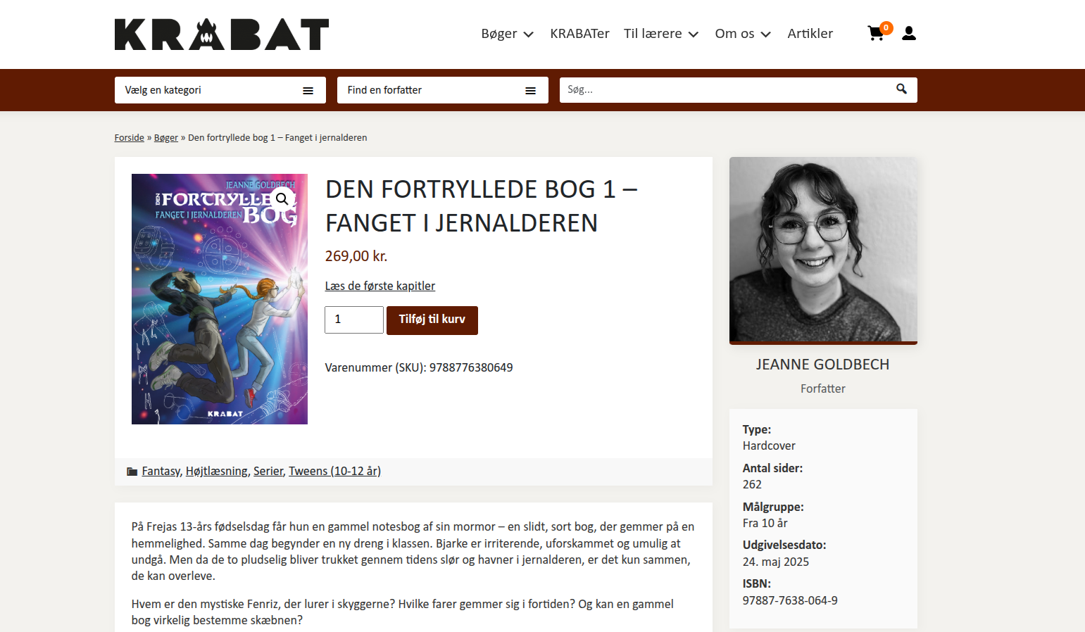 Forlaget KRABAT udgiver fantasifulde bøger til børn, og med en voksende portefølje af titler og forfattere havde de brug for en hjemmeside, der kunne følge med. Deres tidligere løsning bestod af to separate systemer: en hjemmeside bygget i one.com’s hjemmesideprogram med indbygget webshop, og en WordPress-blog placeret i en undermappe på domænet. Det skabte en usammenhængende brugeroplevelse – både for redaktøren bag kulisserne og for de besøgende.